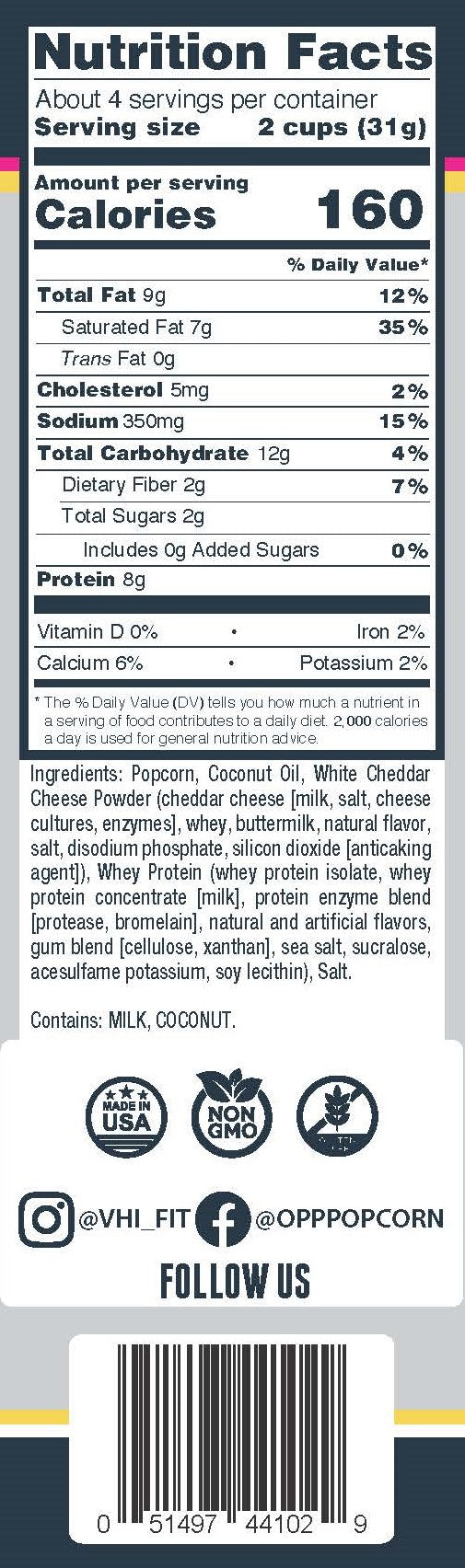 Omaha Protein Popcorn- White Cheddar